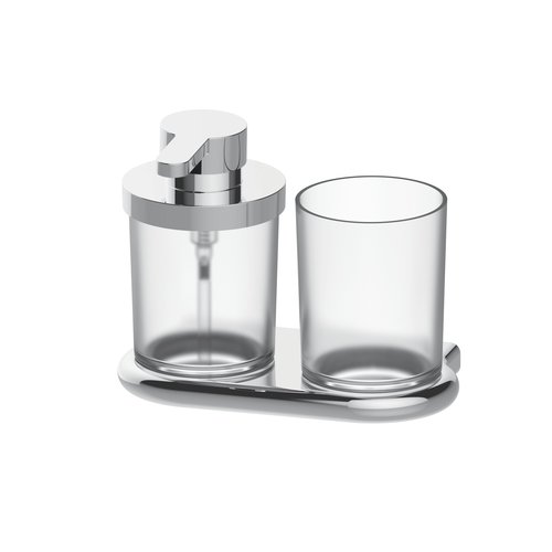 NIA Adesio Kombi Seifenspender + Glashalter Verchromt, Behälter matt Inhalt 0.24 l Mattglas Montage Kleben oder Bohren inkl. Befestigungsmaterial (ohne Klebstoff) Füllmenge Klebstoff: 1.2 ml SikaFast