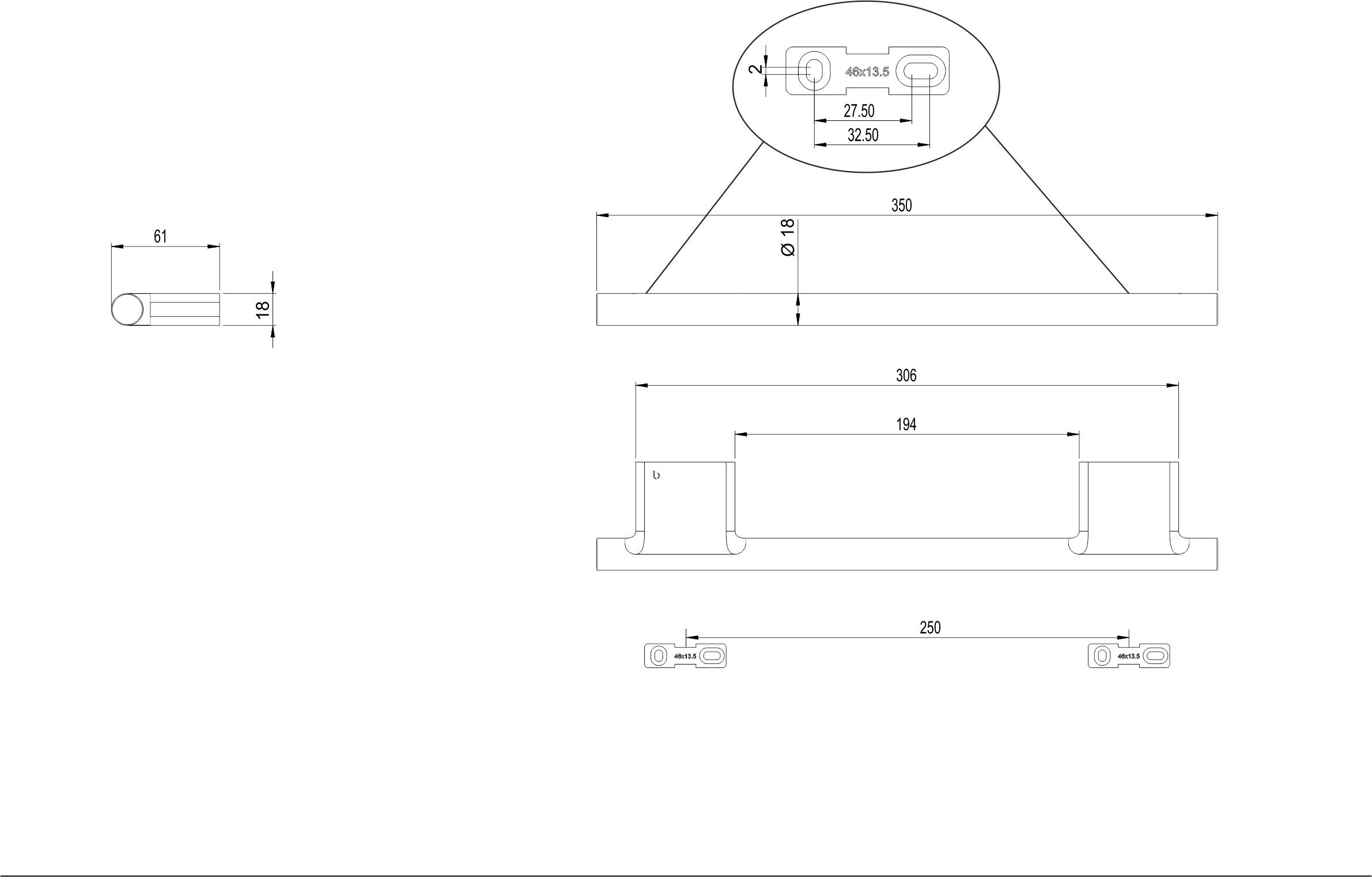 NIA Haltegriff Ausladung 6.1 cm Belastungsgrenze max. 75 kg