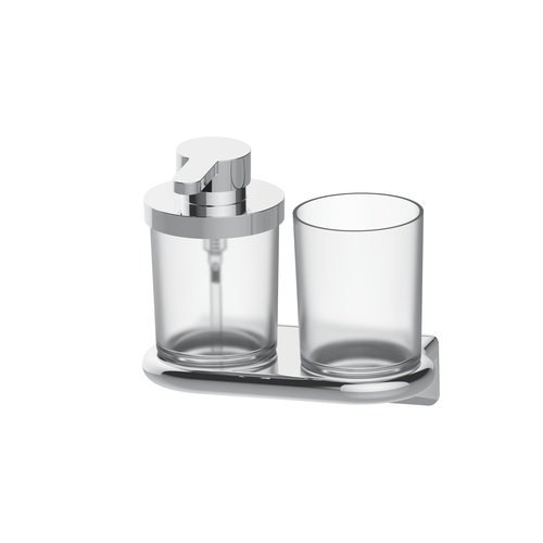NIA Kombi Seifenspender + Glashalter Verchromt, Behälter matt Inhalt 0.24 Liter (max 0.27 Liter) Mattglas