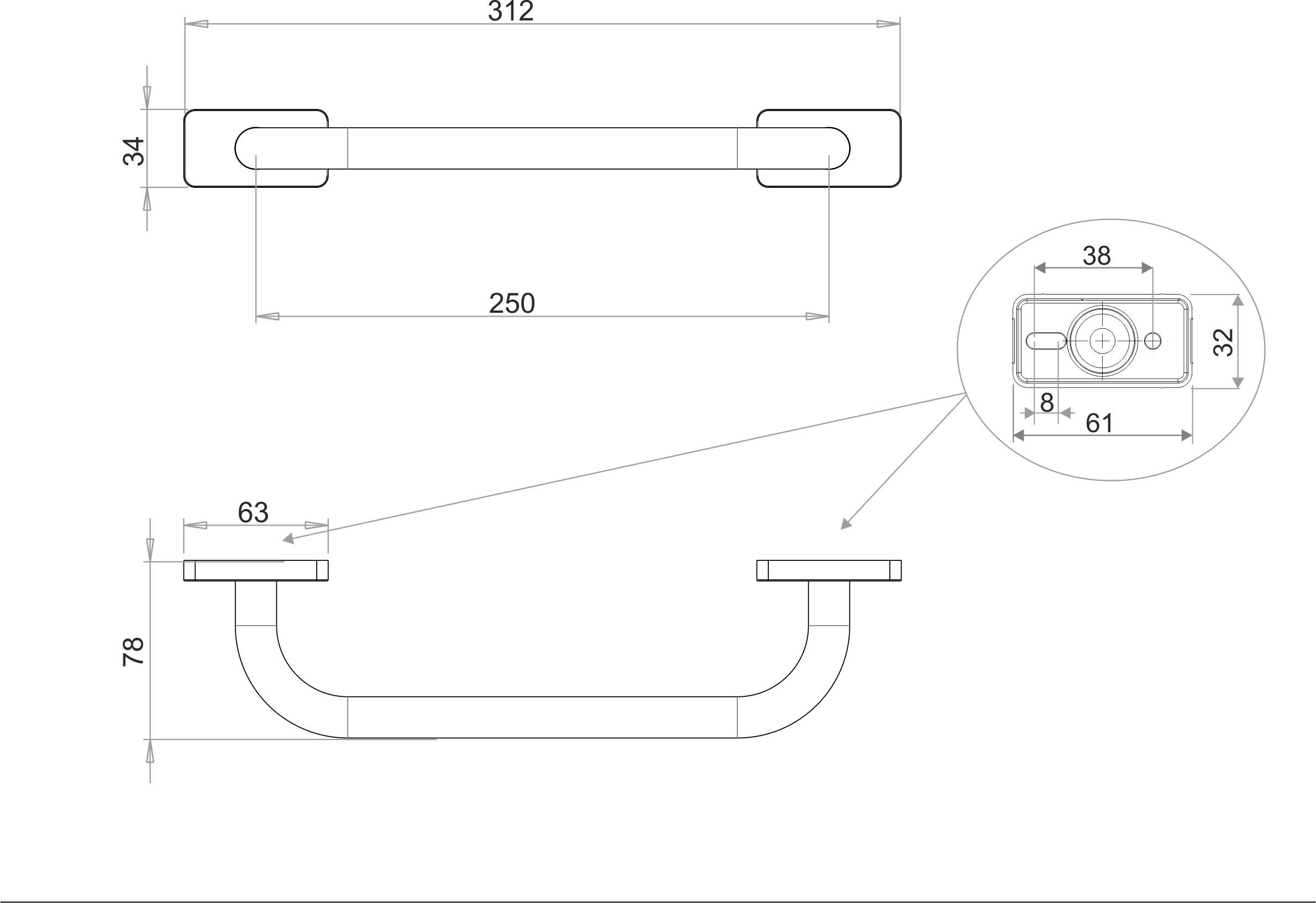CHIC Haltegriff 31.2 x 7.8 x 3.4 cm, Rohrdurchmesser 1.8 cm inklusive korrosionsfreiem Befestigungsmaterial Maximale Belastbarkeit bis 100 kg