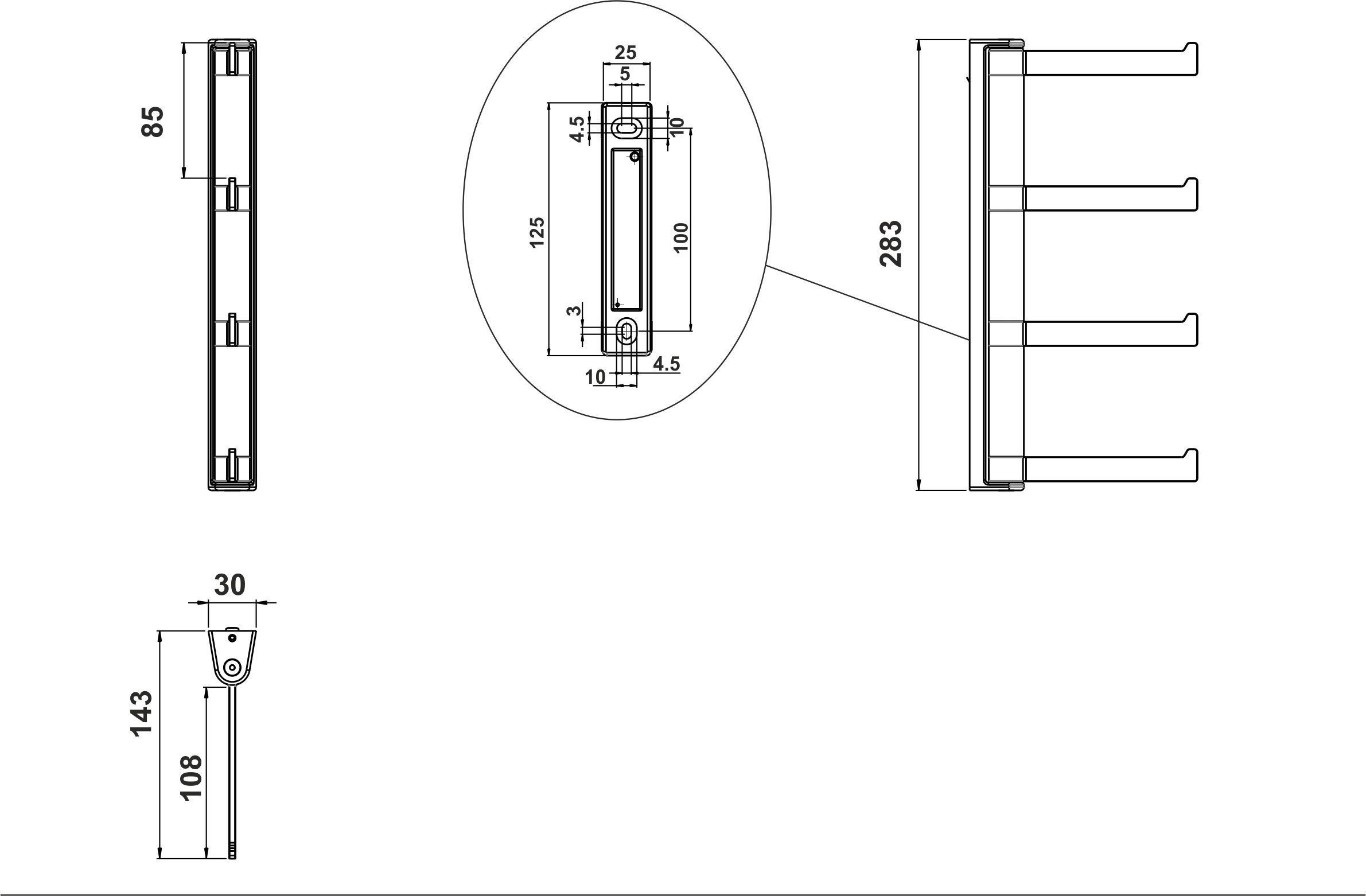 BODENSCHATZ Mehrfachhaken mit 4 schwenkbaren Armen Ausladung 14.5 cm, Höhe 28.5 cm Montage Kleben oder Bohren Klebstoff Füllmenge: 2.05 ml