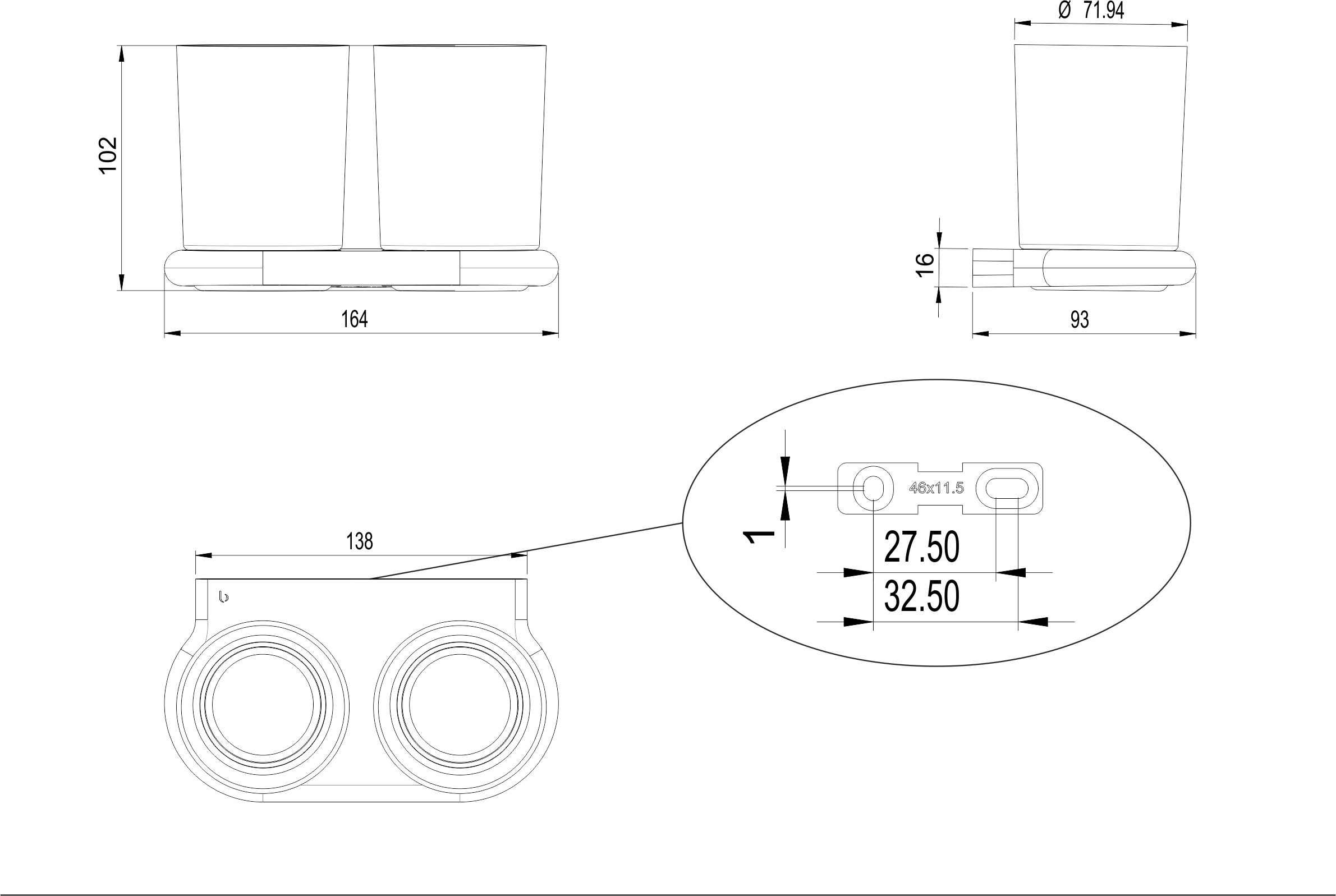 NIA double glass holder, matt glass