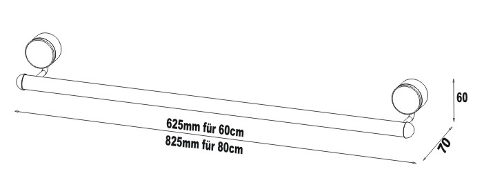 MIRA Porte-linge mural 60 cm, sans pièces de décor, (diamètre 1,8 cm, saillie 5,5 cm)