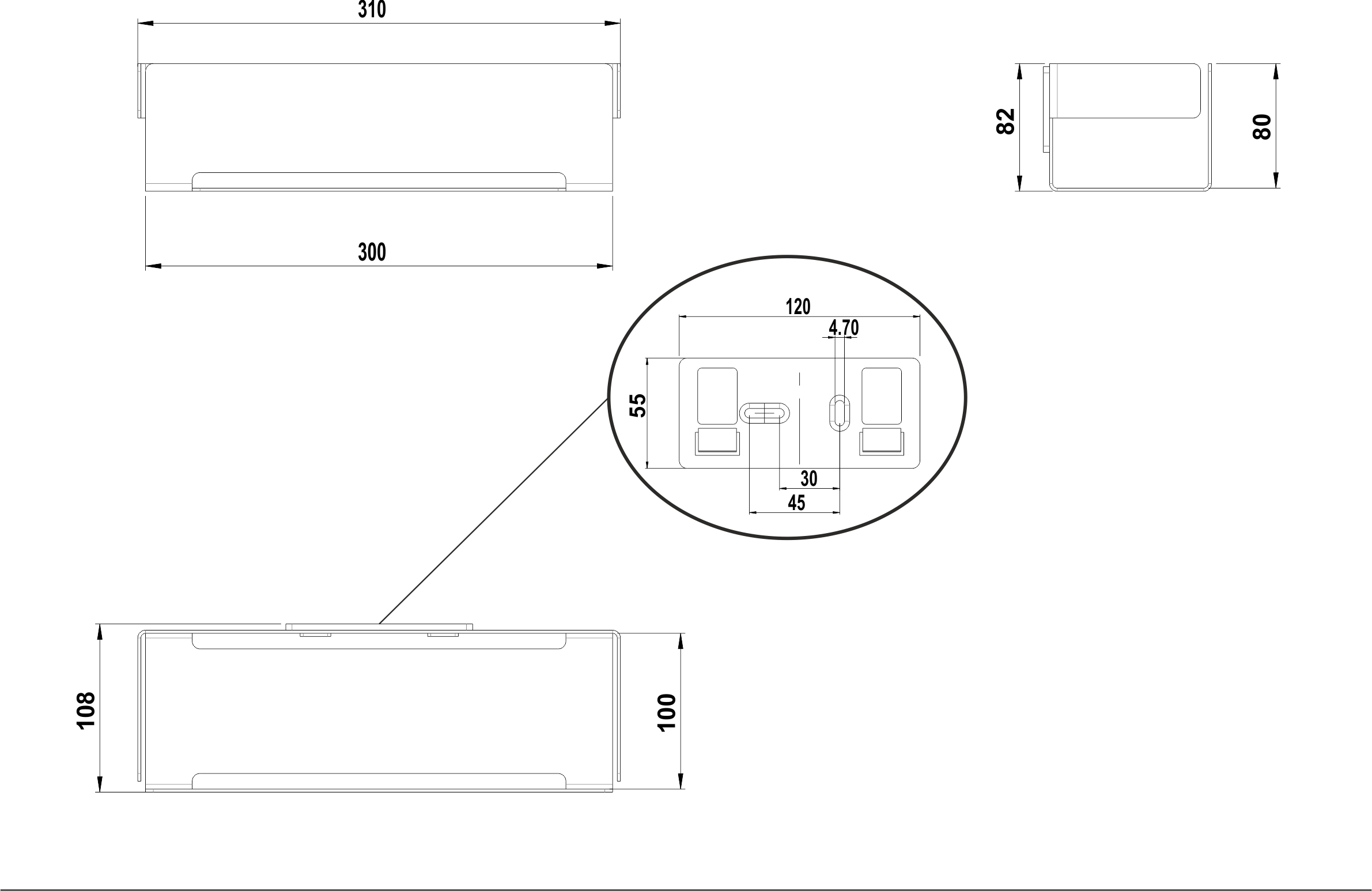INNOX Récipient 31 x 10.8 x 8.2 cm Acier inoxydable électropoli Montage collage ou perçage incl. matériel de fixation (sans colle) Qté d'adhesif de remplissage: 2,1 ml SikaFast