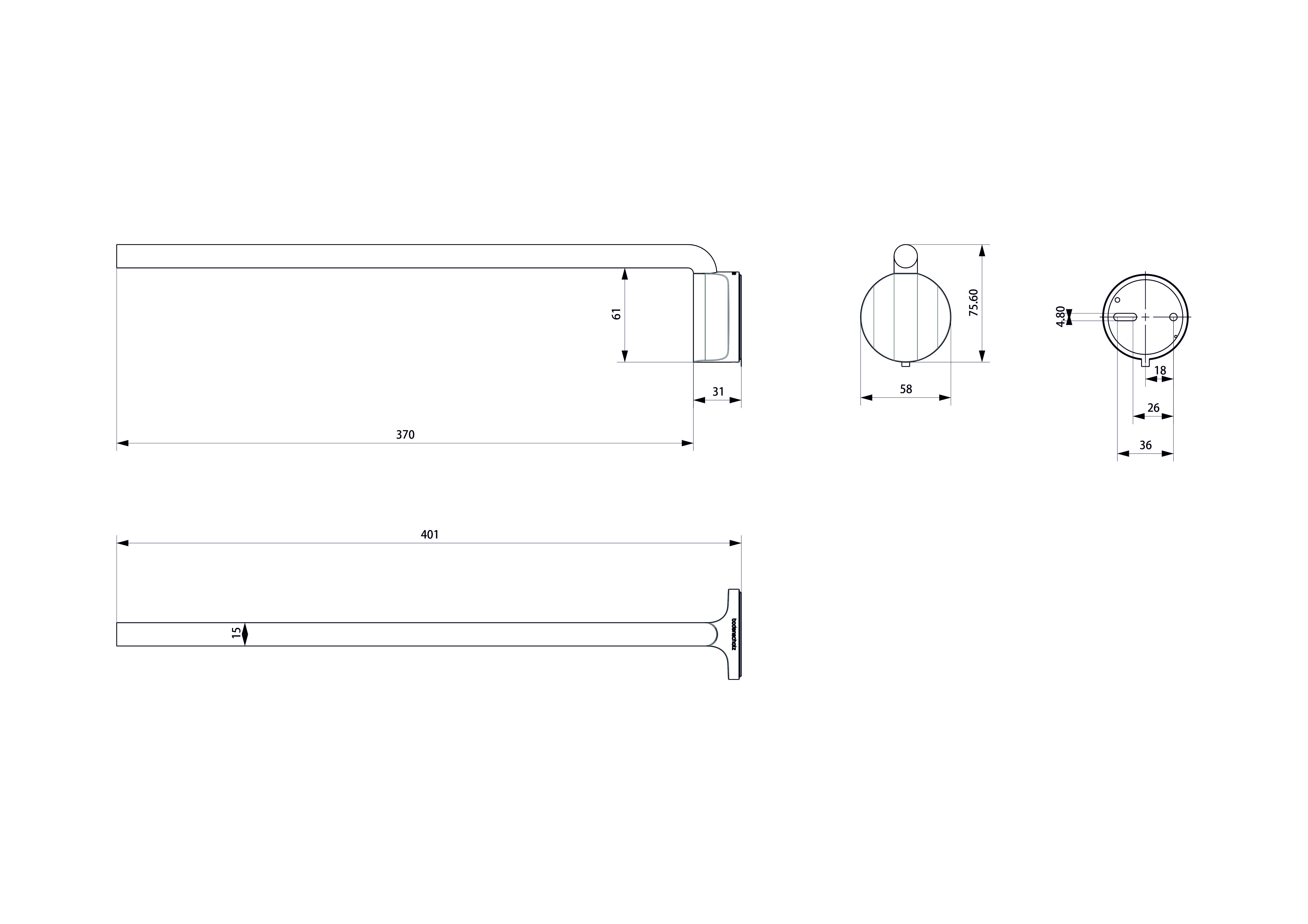 ONYA Porte-serviette chromé, 40 cm, montage Adesio pour collage ou perçage, matériel de fixation incl. (sans colle) Qté d'adhésif de remplissage: 2.17 ml SikaFast