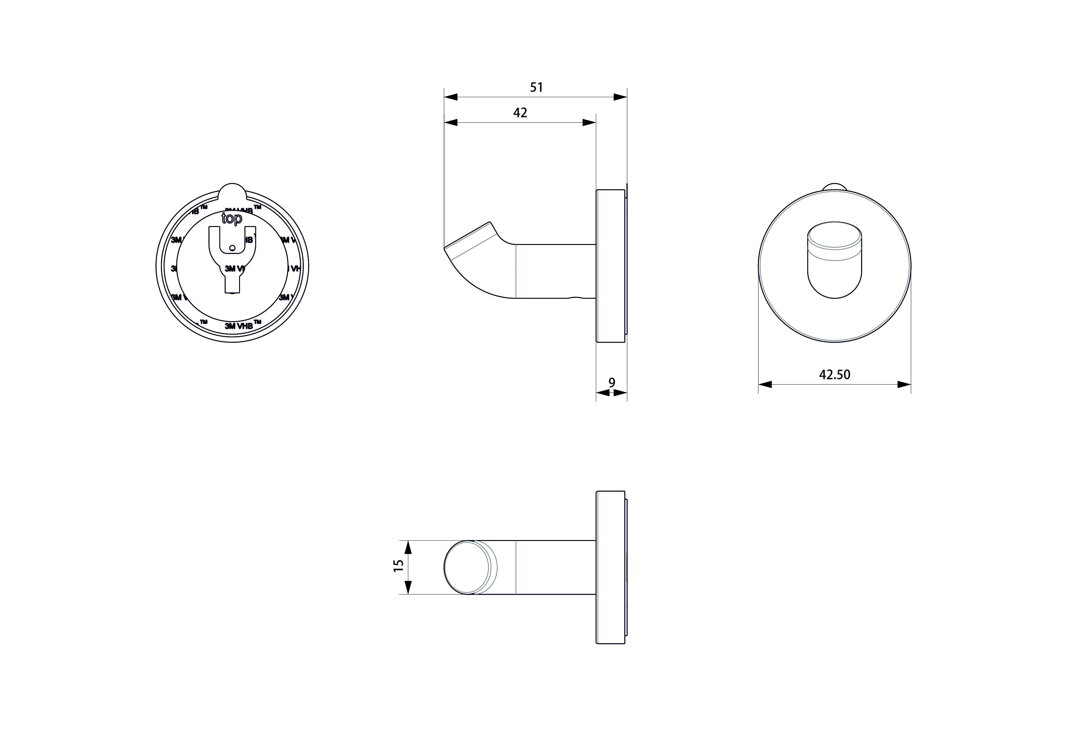 ONYA Crochet chromé, montage Adesio pour collage ou perçage, matériel de fixation incl. (sans colle) Qté d'adhésif de remplissage: 1.2 ml SikaFast
