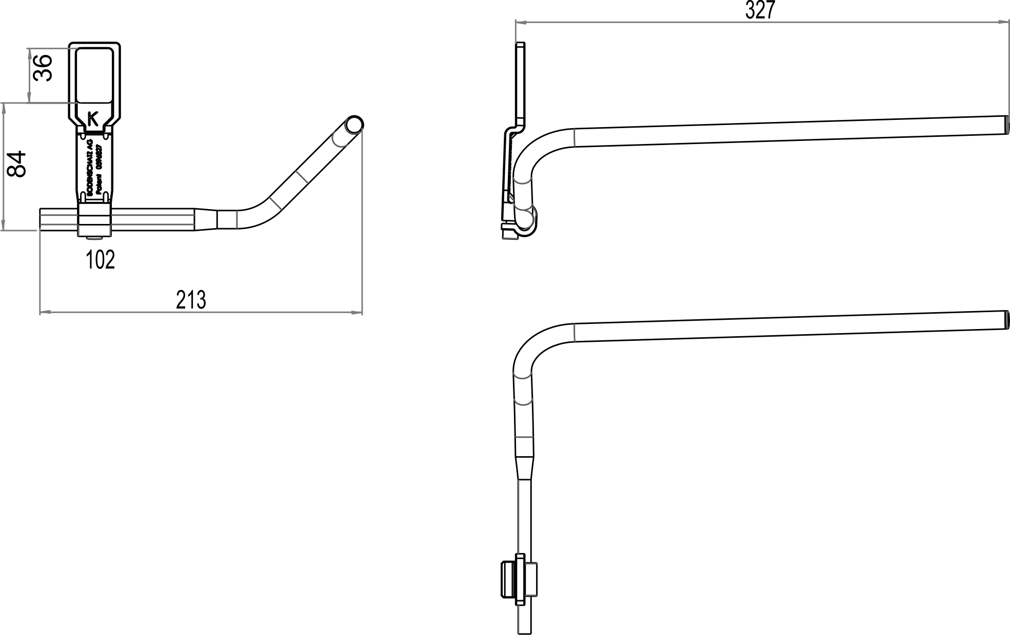 BODENSCHATZ Porte-serviettes LAUFEN droite, partie murale courte, saillie 326 mm, latéralement max. 213 mm montage sans perçage conforme à la norme SIA 271/1 pour lavabos (voir matrice d'utilisation): LAUFEN