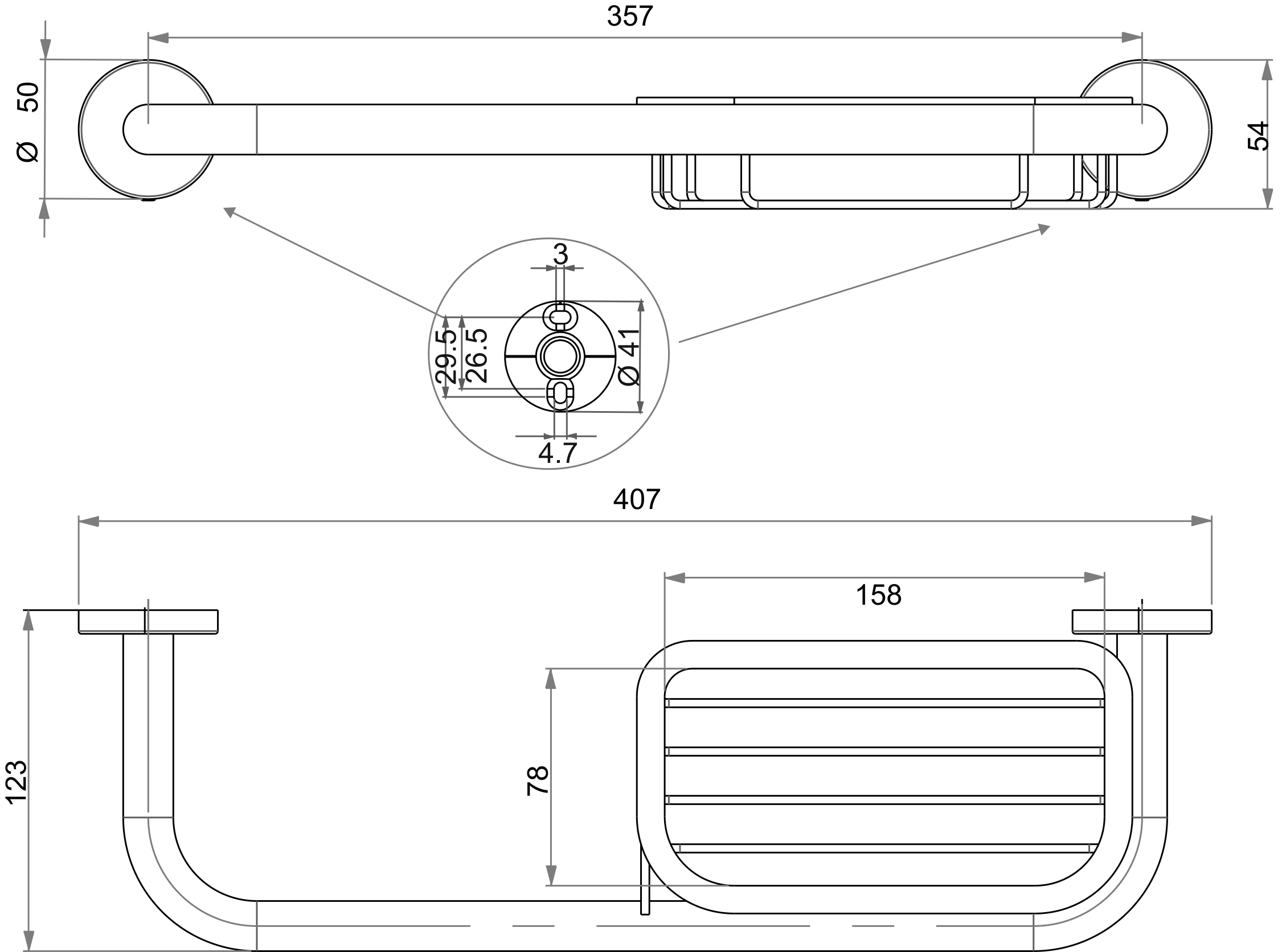 ProCasa Tre Barre d'appui avec savonnière à barrettes, chromé Limite de charge max. 75 kg Attention ! Pré-percer les trous de fixation verticalement les uns au-dessus des autres