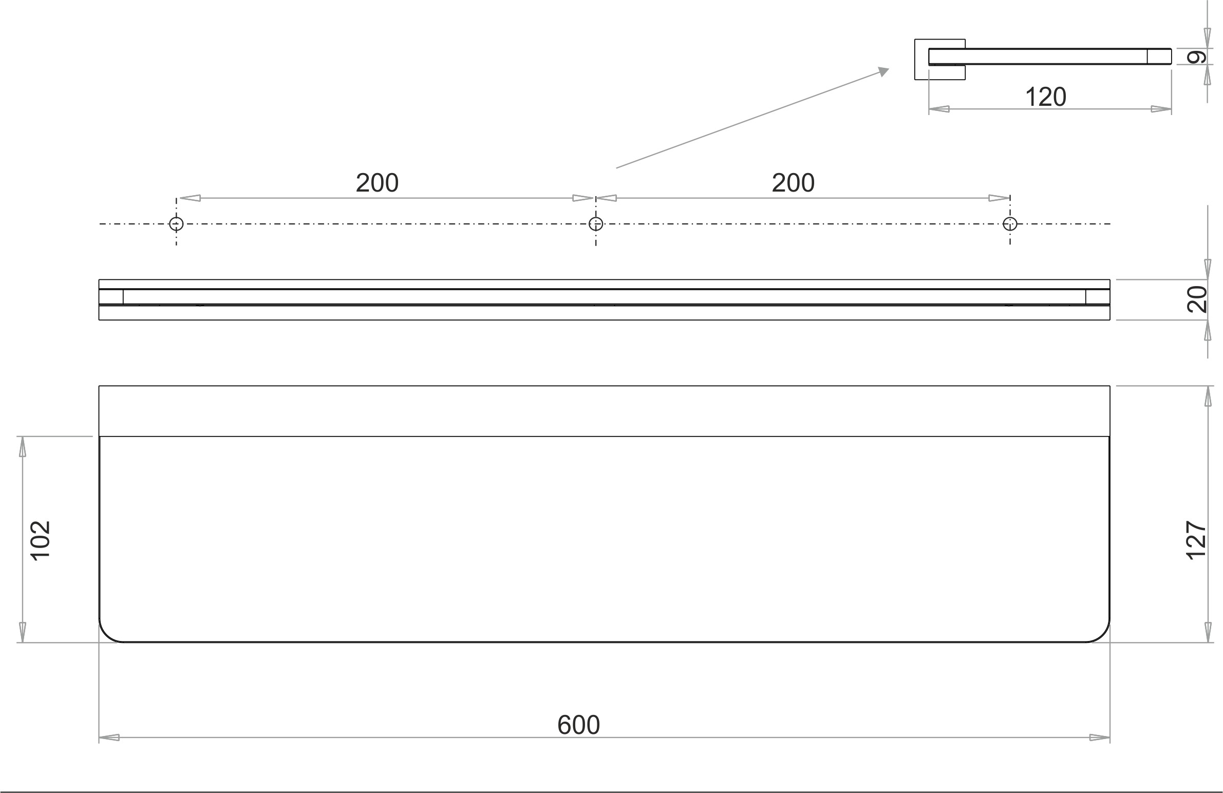 CHIC 14 Tablette avec console, 60 cm, verre opaque, (épaisseur du verre 8 mm)