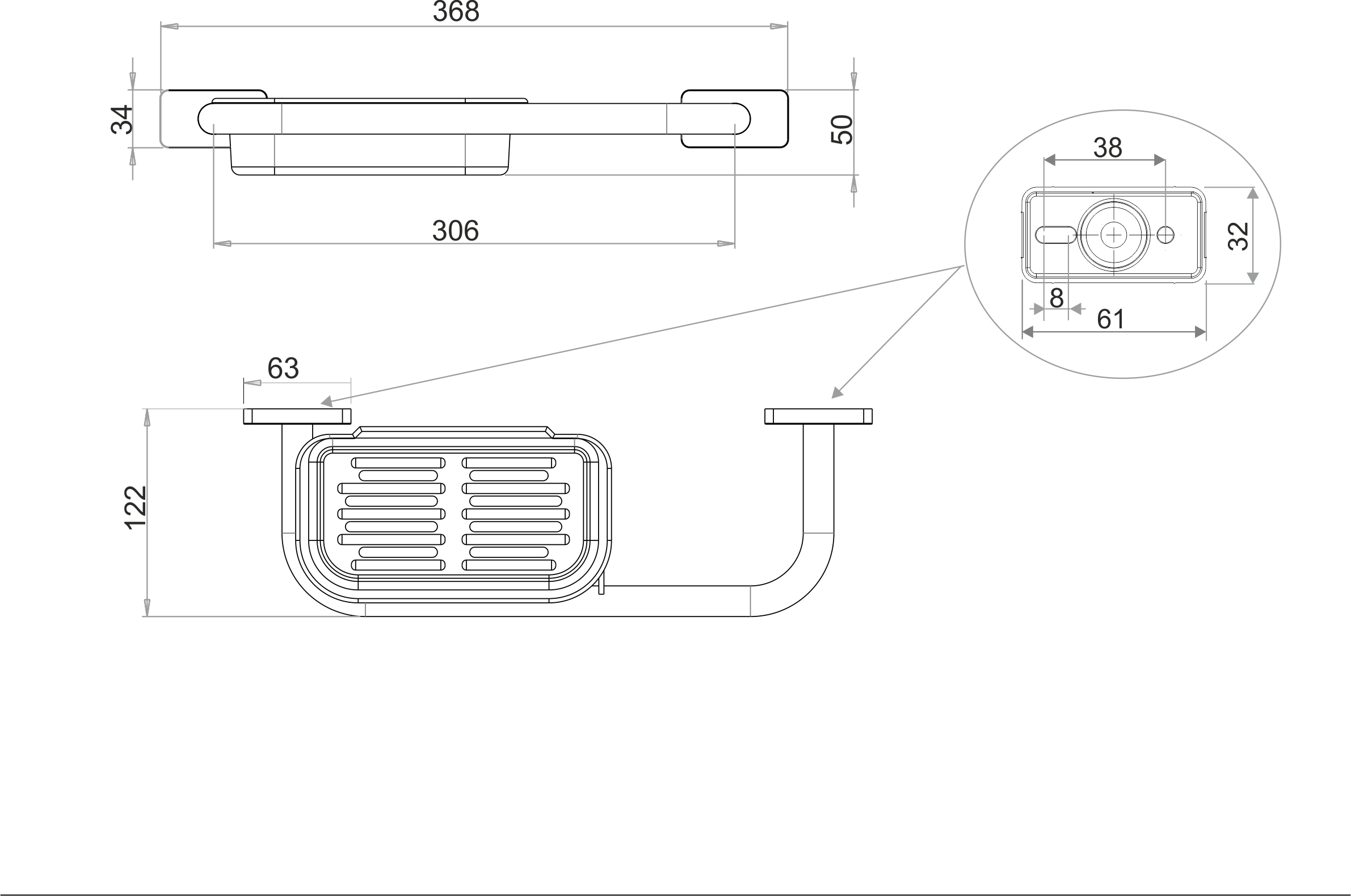 CHIC 14 Barre d'appui av. savonnière, clair, 37 x 12.2 x4.5 cm