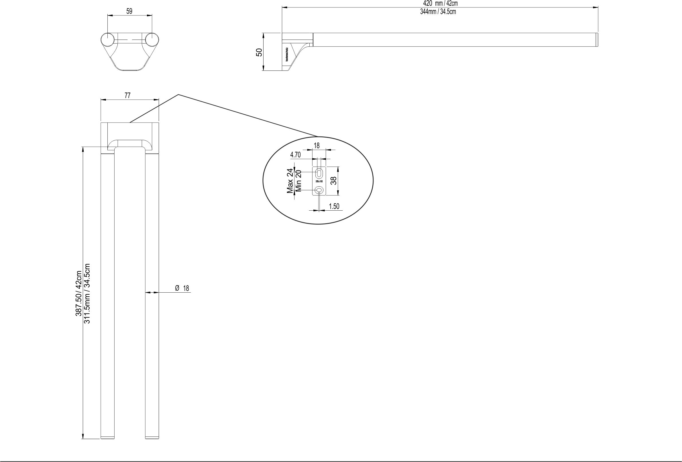 NIA Porte-serviettes 42 cm à deux bras fixe