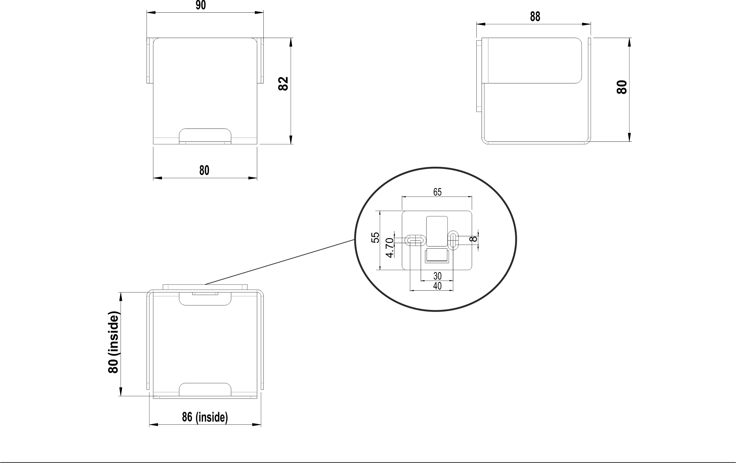 INNOX Contenitore 9 x 8.8 x 8.2 cm Acciaio inossidabile elettrolucidato Montaggio incollaggio o foratura incl. materiale di fissaggio (senza colla) Quantità riempimento adesivo: 2,1 ml SikaFast