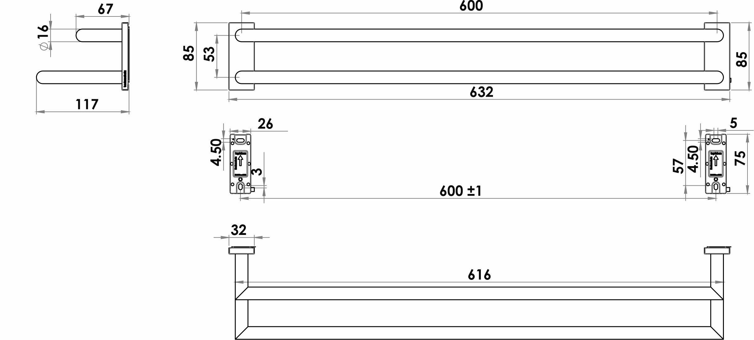 SIGNA Porta asciugamani doppio 60 cm cromato, sporgenza 11.7 cm, Montaggio Adesio per incollaggio o foratura, incl. materiale di fissaggio (senza adesivo), quantità riempimento adesivo: 2x 1.4 ml SikaFast