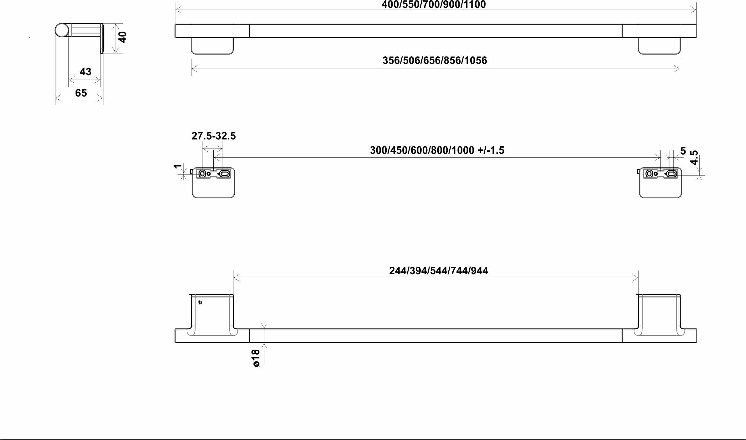 NIA Adesio Porta asciugamani 60 cm Sporgenza 6.5 cm Montaggio incollaggio o foratura incl. materiale di fissaggio (senza colla) Quantità riempimento adesivo: 2x 1,2 ml SikaFast