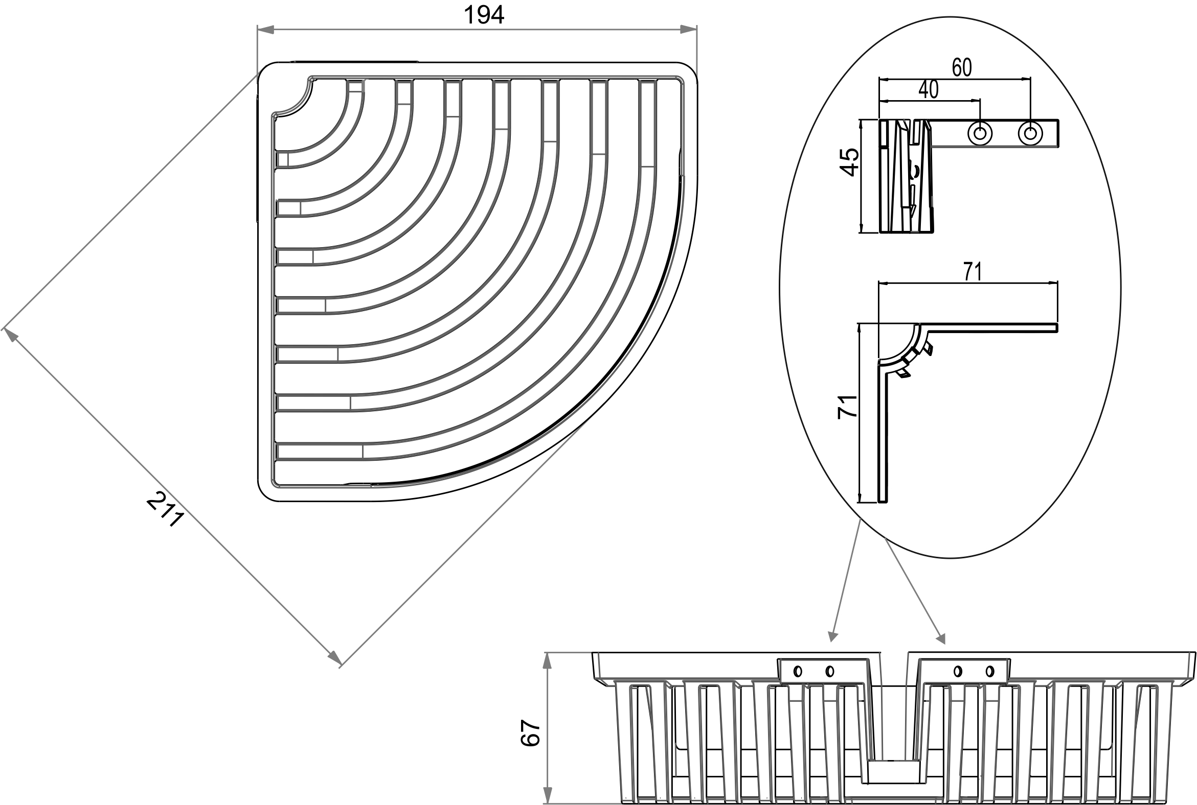 BODENSCHATZ Cestino da doccia modello ad angolo, fissaggio coperto, altezza 6.5 cm, 19.5 x 19.5 cm