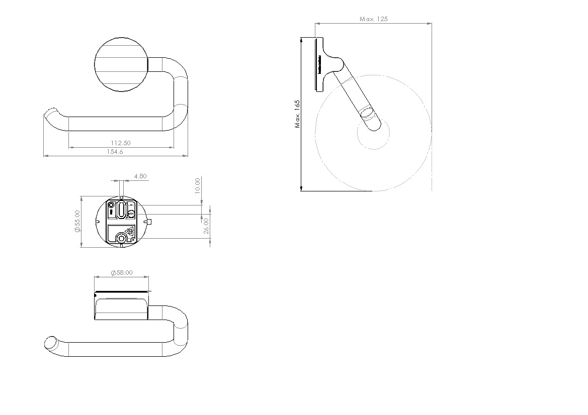 ONYA Portacarta cromato, senza coperchio, montabile a sinistra e destra, montaggio Adesio per incollagio o foratura, materiale di fissaggio incl. (senza adesivo)