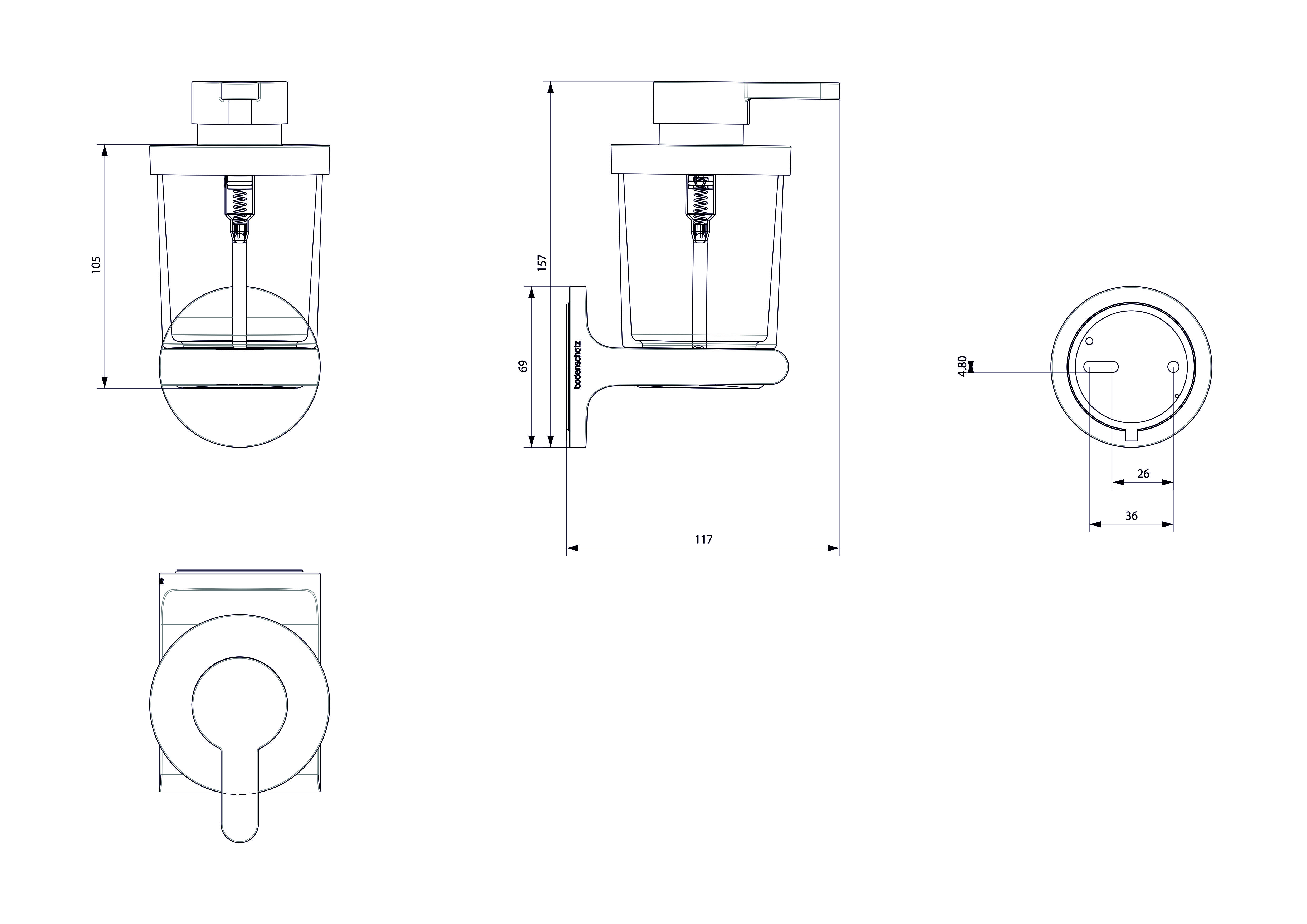 ONYA Distributore di sapone nero opaco, vetro chiaro, montaggio Adesio per incollagio o foratura, materiale di fissaggio incl. (senza adesivo) Quantità riempimento adesivo: 2.17 ml SikaFast
