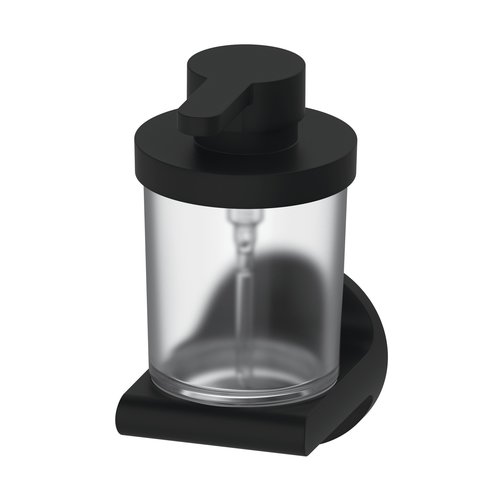 ONYA Distributore di sapone nero opaco, vetro chiaro, montaggio Adesio per incollagio o foratura, materiale di fissaggio incl. (senza adesivo)