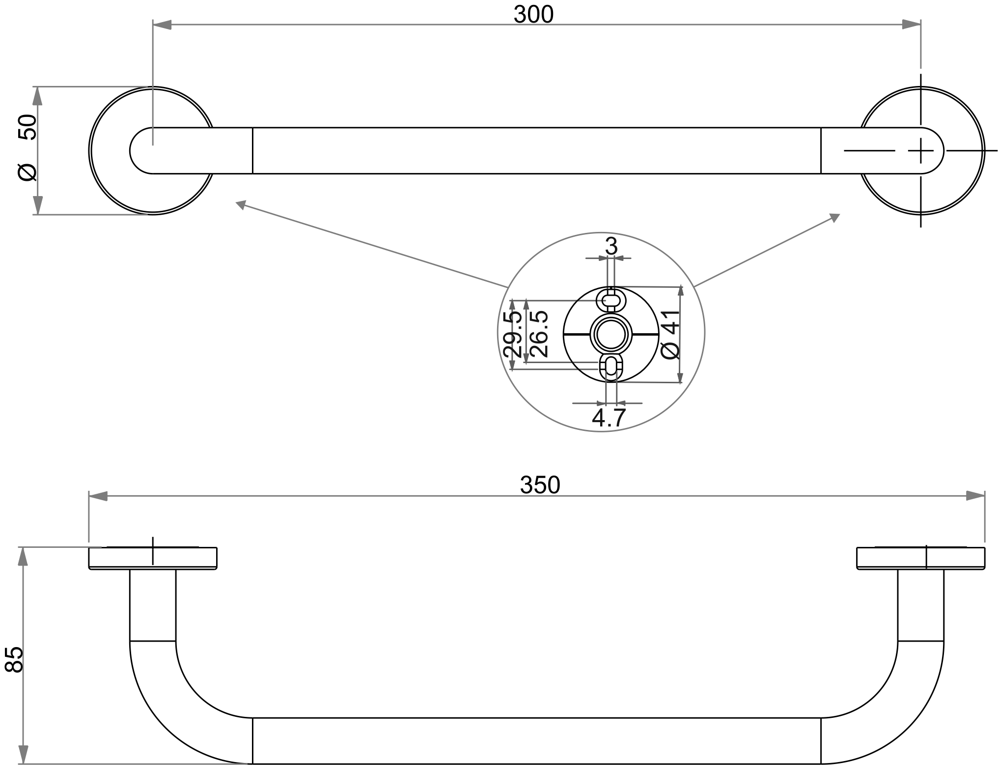 ProCasa Tre Corrimano cromato incl. materiale di fissaggio anticorrosione Limite di carico max. 75 kg Attenzione! Preforare i fori di fissaggio in in verticale, uno sopra l'altro