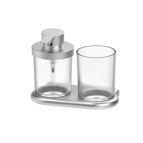 NIA Combi Distrib. di sapone + portabicchiere Nichel spazzolato, contenitore trasparente capacità 0.24 litri (max 0.27 litri) Tritan infrangibile senza BPA